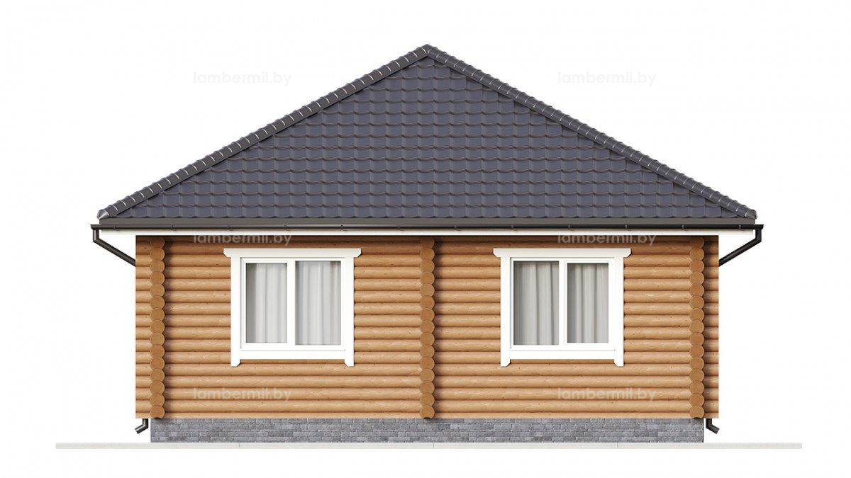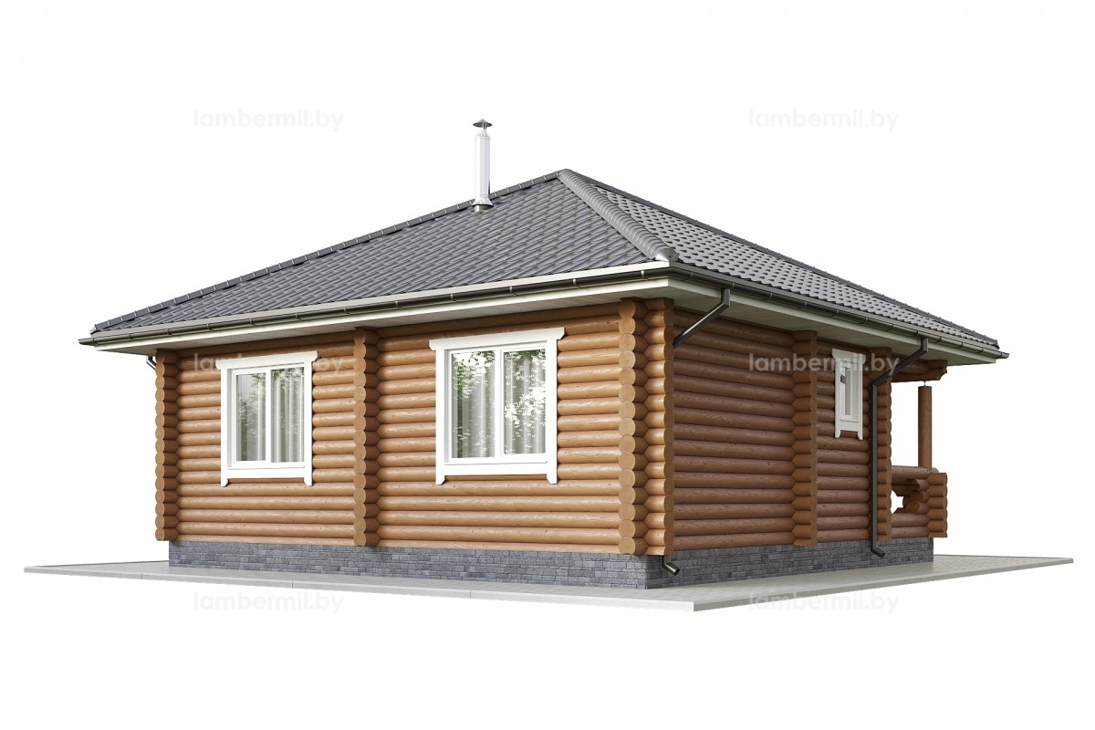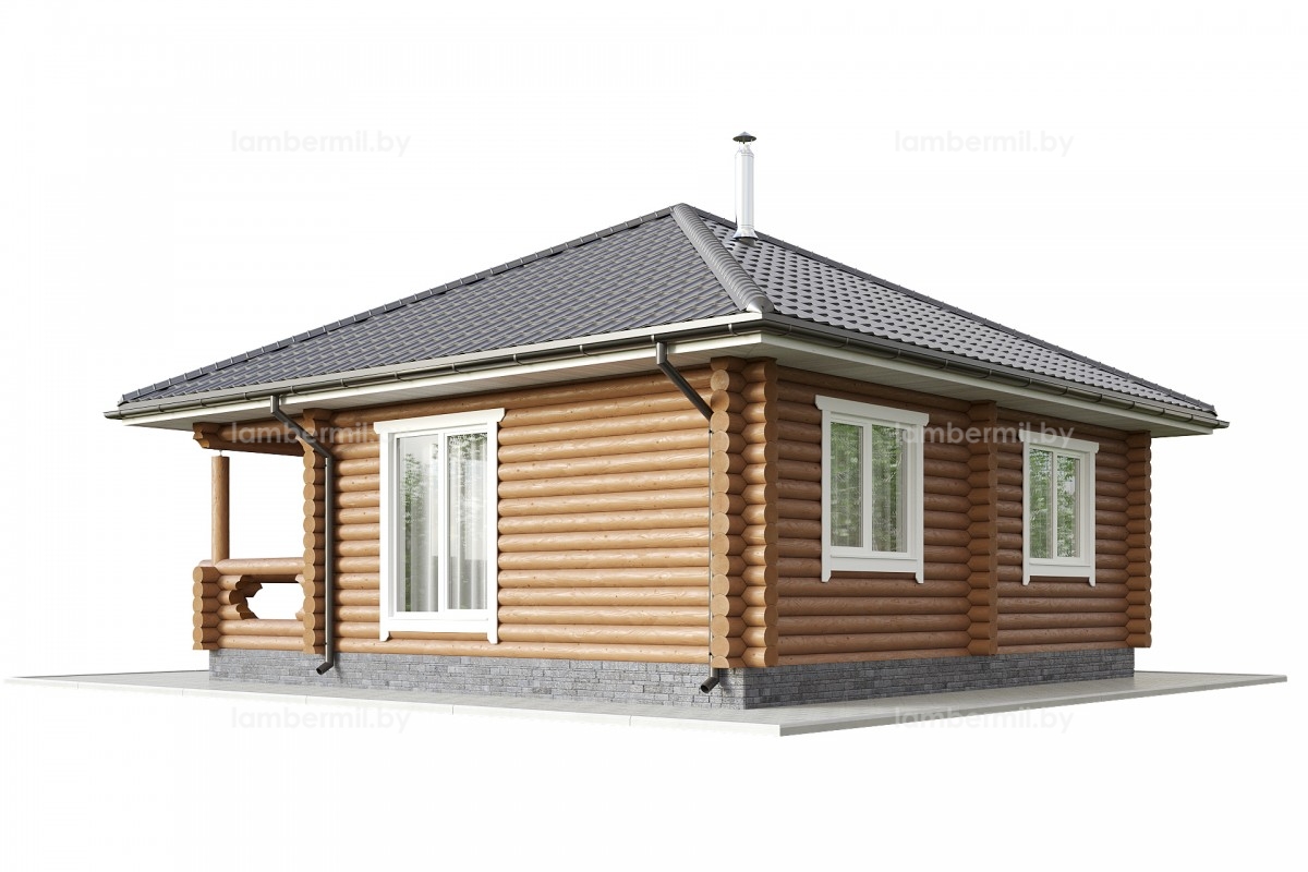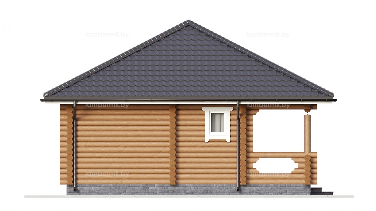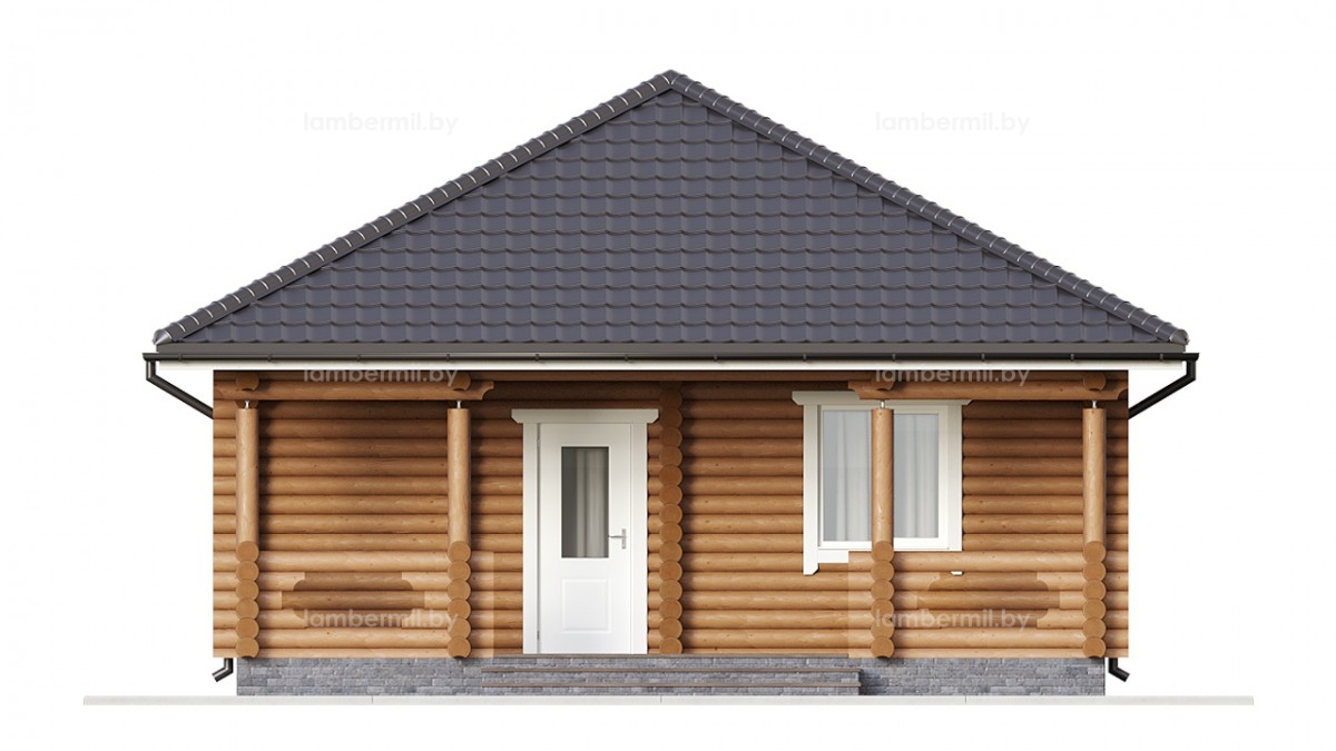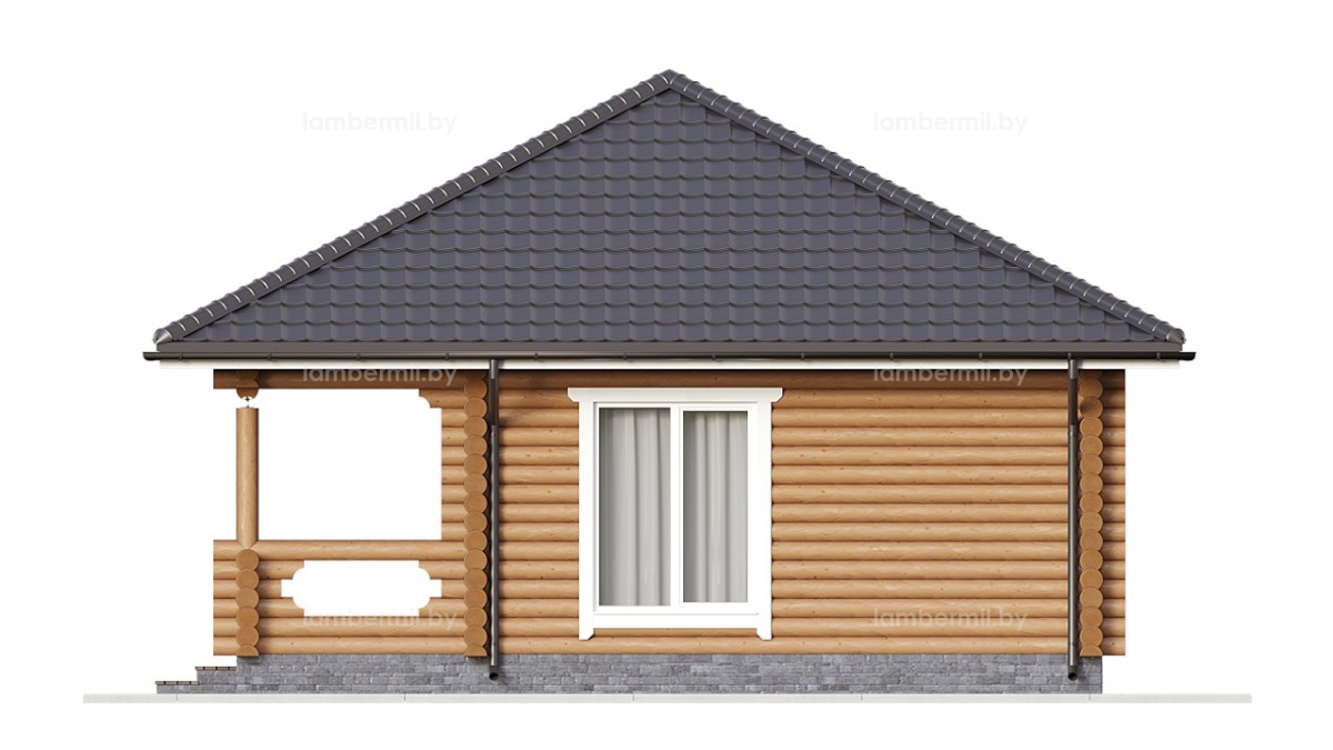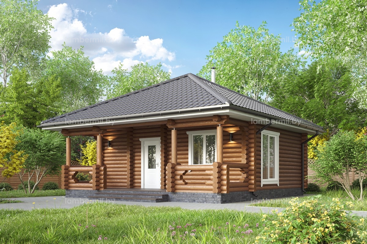 Проект деревянного дома 049 это небольшой уютный одноэтажный домик с шатровой крышей. Вход в дом организован через террасу. В доме есть просторная кухня-гостиная с большим панорамным окном, санузел и отдельная спальня. Такой домик можно использовать как для постоянного проживания небольшой семьи, так и для сезонного проживания за городом.